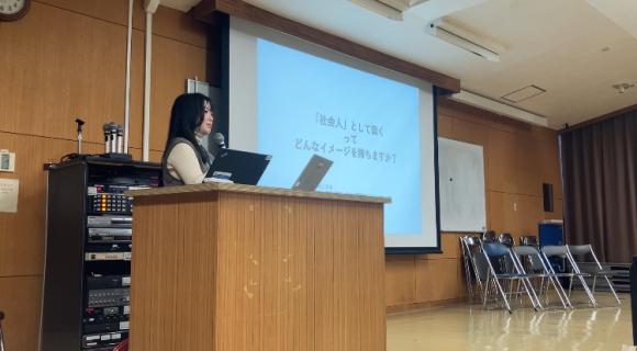 「同じキャリアを歩む先輩」として、仕事内容ややりがい、仕事を選んだ理由、将来の夢を伝えることで、大学院や就職といった選択肢に直面して悩みを抱える学生たちの不安に向き合いました。
