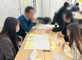 チーム内で一通りのストーリーを完成させたのち、中高生だけをテーブルに残し大学生・社会人は自チーム以外のテーブルに移動。テーブルにやってきた大学生・社会人に対し、中高生が自分たちのチームで話し合った内容を発表しました。