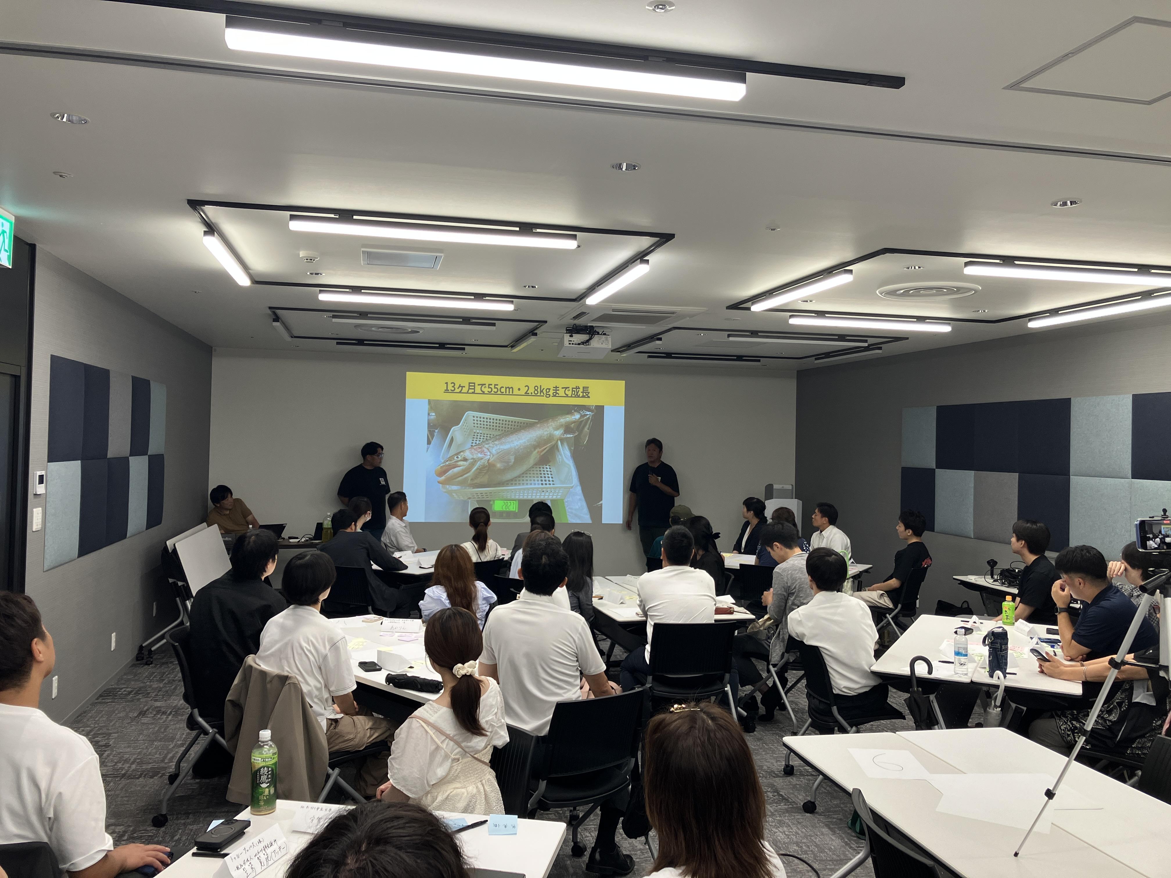 サーモン養殖から未来の福祉と食を考えるというテーマのお話しがあり、参加者は熱心にメモを取りながら聞きいっていました。