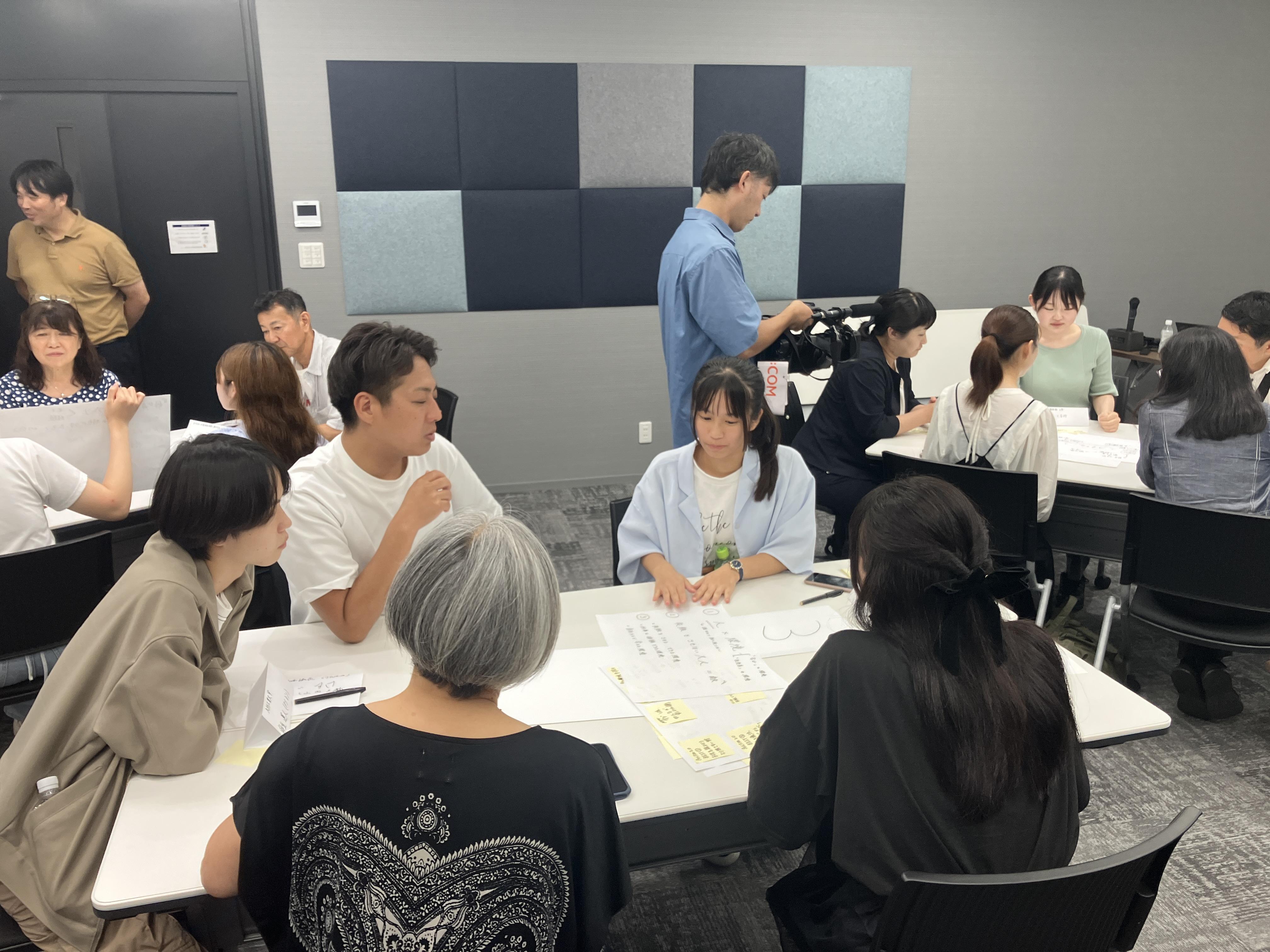最大の特徴は、若者(主に中学生・高校生・大学生)と社会人が同じテーブルで膝を突き合わせて語り合い、世代を超えて「ありたい未来」について議論することです。参加者全員が多様な価値観に触れ、自分の意見を磨く機会となる新しい形式のワークショップであることから参加者満足度の高いイベントとなっています。