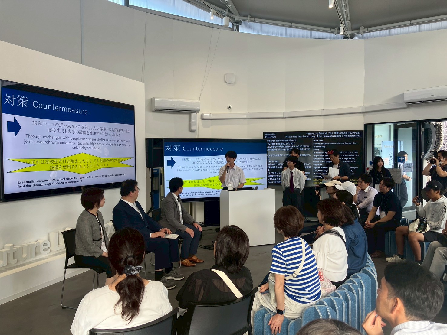 高校生たちが「高校生が主役の共創アクション」を大勢の来場者の前で発表しました。