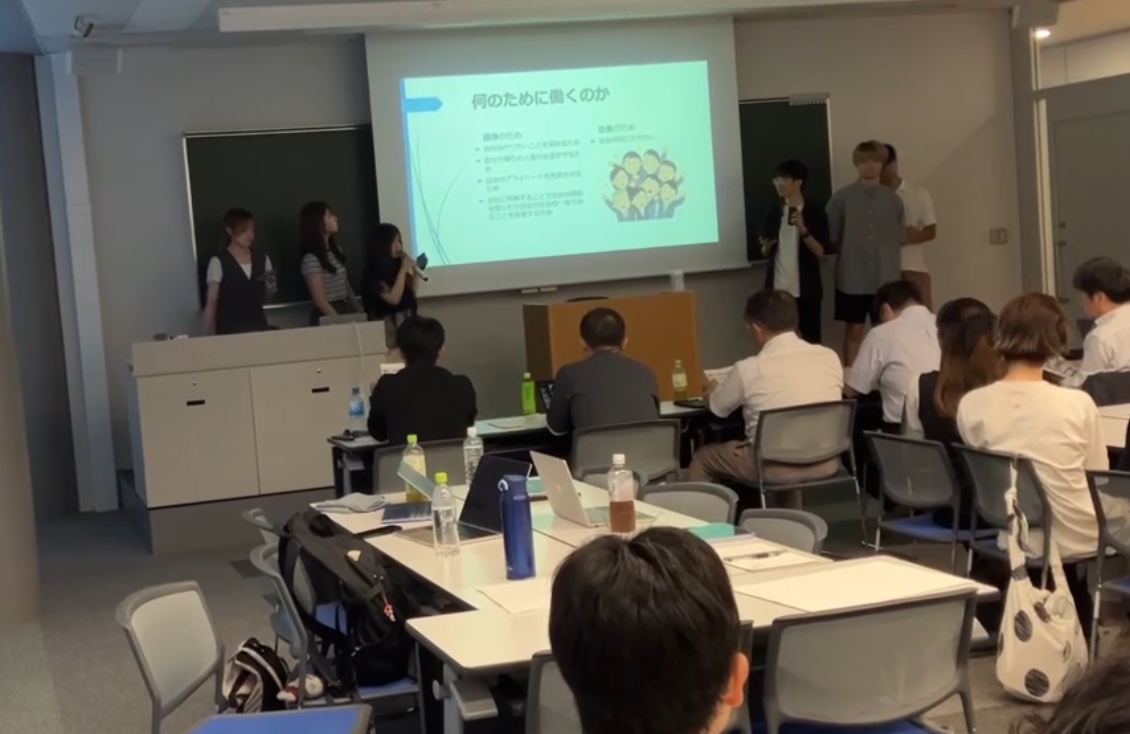 学生自身が考える「働くとは何か?」をテーマに、プレゼンテーション形式で発表を行いました。