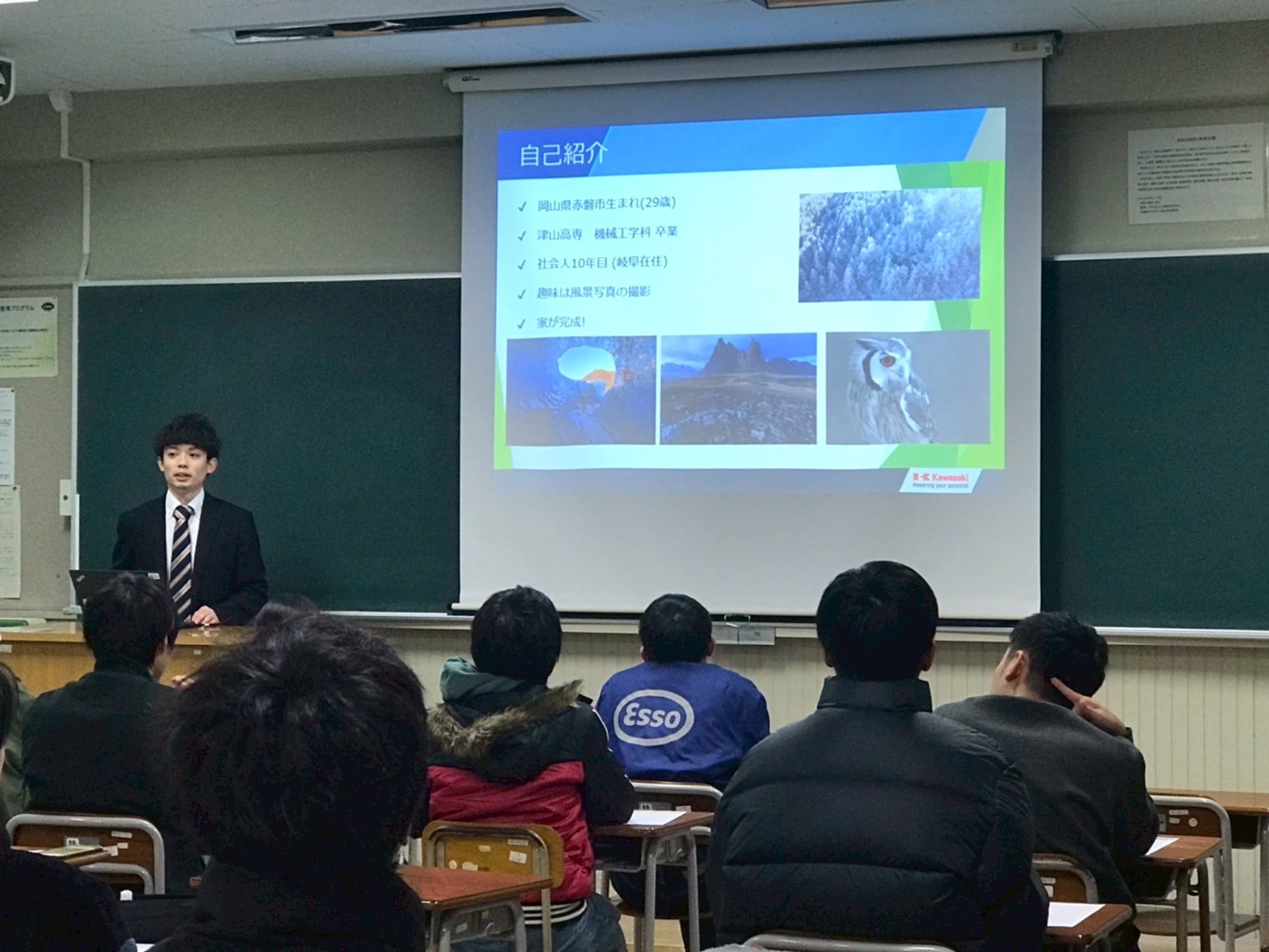 今回は津山高専が主催となり、川崎重工業株式会社、パナソニックインダストリー株式会社の2社からご登壇いただきました。
