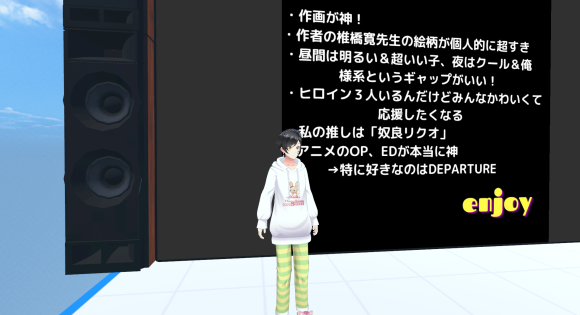 流行りのアニメから十年前に人気を博した漫画、果てはサクセスストーリーの映画など、幅広いジャンルに渡ってそれぞれが熱い想いを語りました。また、声を出したり顔を出すことに抵抗があり、これまで自己表現できなかった人たちも、アバターや音声ソフトに文字を打ち込んで機械にしゃべらせることで楽しく会話ができるシステムを利用すし、楽しく快適に自己表現ができました!