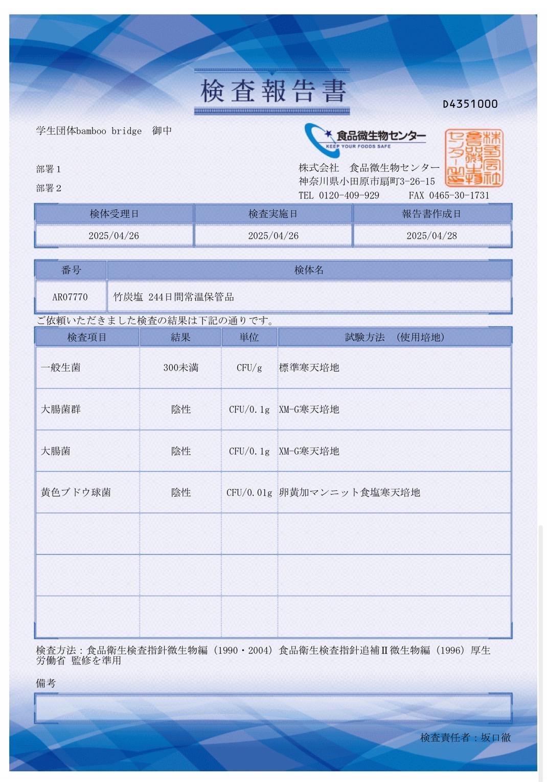 塩を販売するに向け必要な資格や商品衛星など様々な検査を各自で動いております!