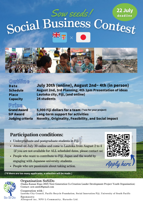 私たちは大阪万博TEAM EXPO2025の組織に所属しながら活動しており、8月にフィジーにて、日本と海外の学生を対象に社会課題解決のソーシャルビジネスコンテストを企画・運営している団体です。