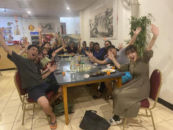新たに到着したメンバーも含め、先日仲良くなった現地の大学生と夕食を食べました。8月のプランニングコンテストに向けてスケジュールや滞在先などについて話しました。現地の大学生は非常に協力的で、一緒にできることが心強いです!