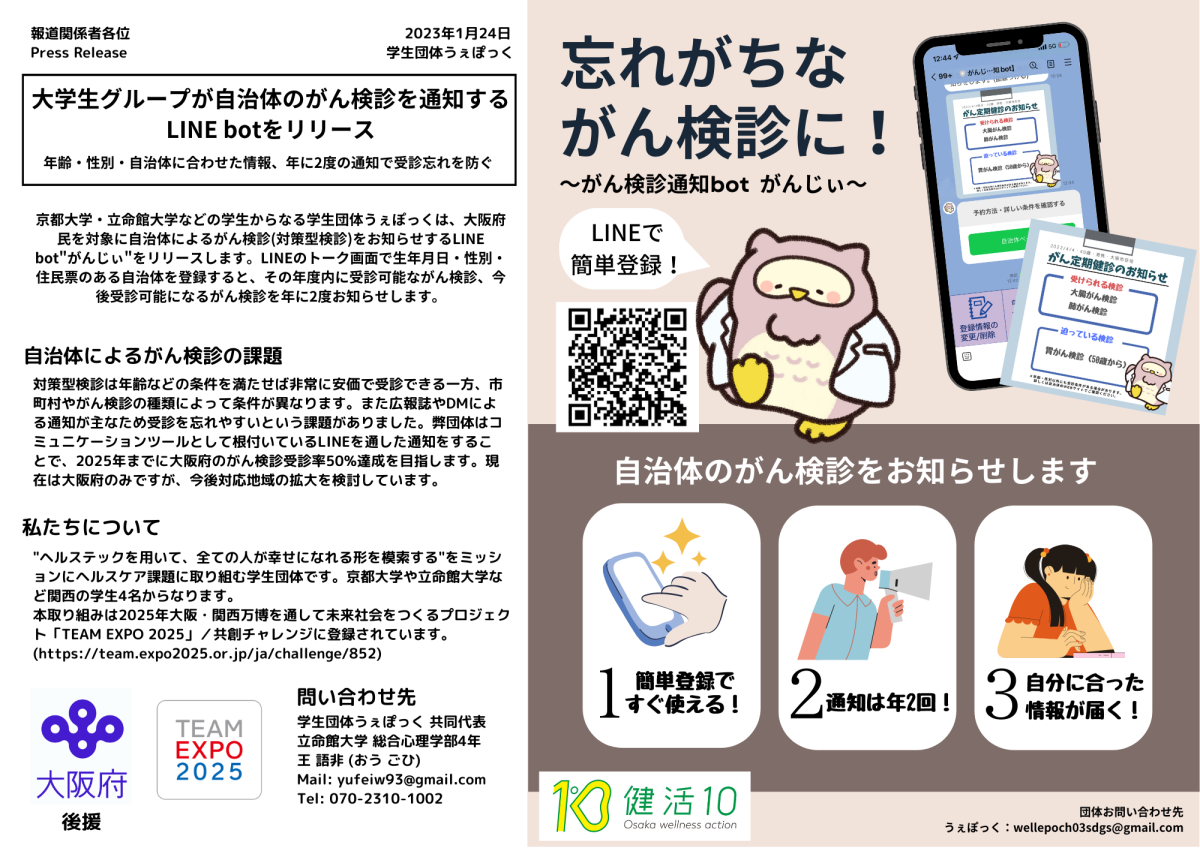 - あなたのがん検診をお知らせ!LINE botをリリース!
