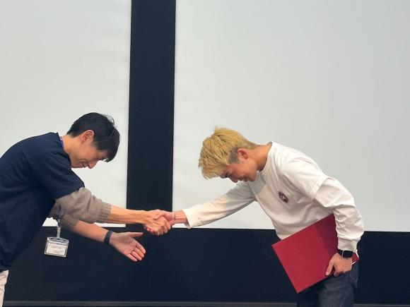 メンターの方が「良い発表だったよ。よくここまで成長したね。」と
