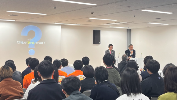 会場には、万博に関心がある若者たちや開催地である九州最大のテーマパークであるハウステンボスの会長など