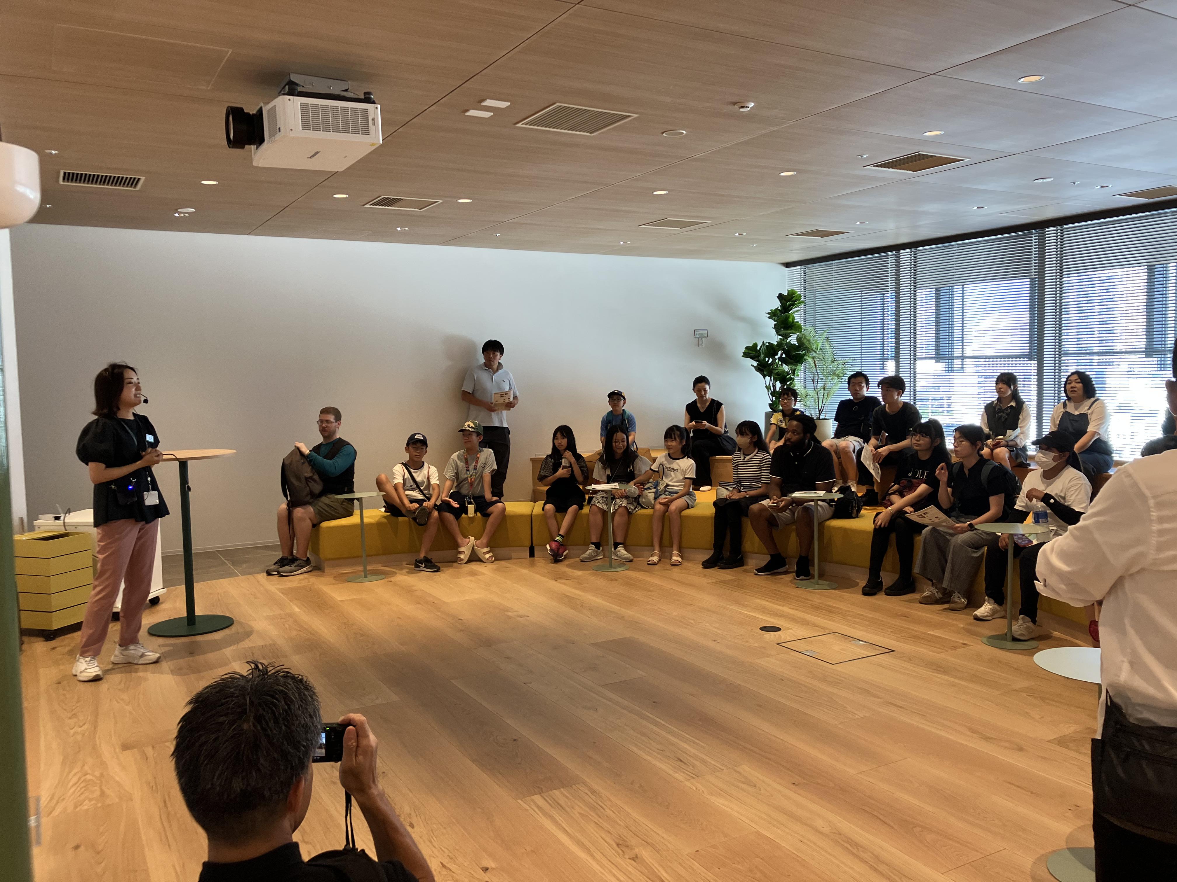 また、TAKANAWA GATEWAY CITYを「100年先の心豊かなくらしのための実験場」と位置づけ、様々な企業・地域の方々と共創しながら社会課題の解決に向けた未来のまちづくりに取り組んでおられるJR東日本と“未来を共に創る”というビジョンを共有する中で特別協力を頂き、TAKANAWA GATEWAY CITY内を巡る街中ツアーを実施することができました。最新技術を実体験した上でディスカッションに臨むことで、未来の展望についてより具体的な対話が生まれました。
