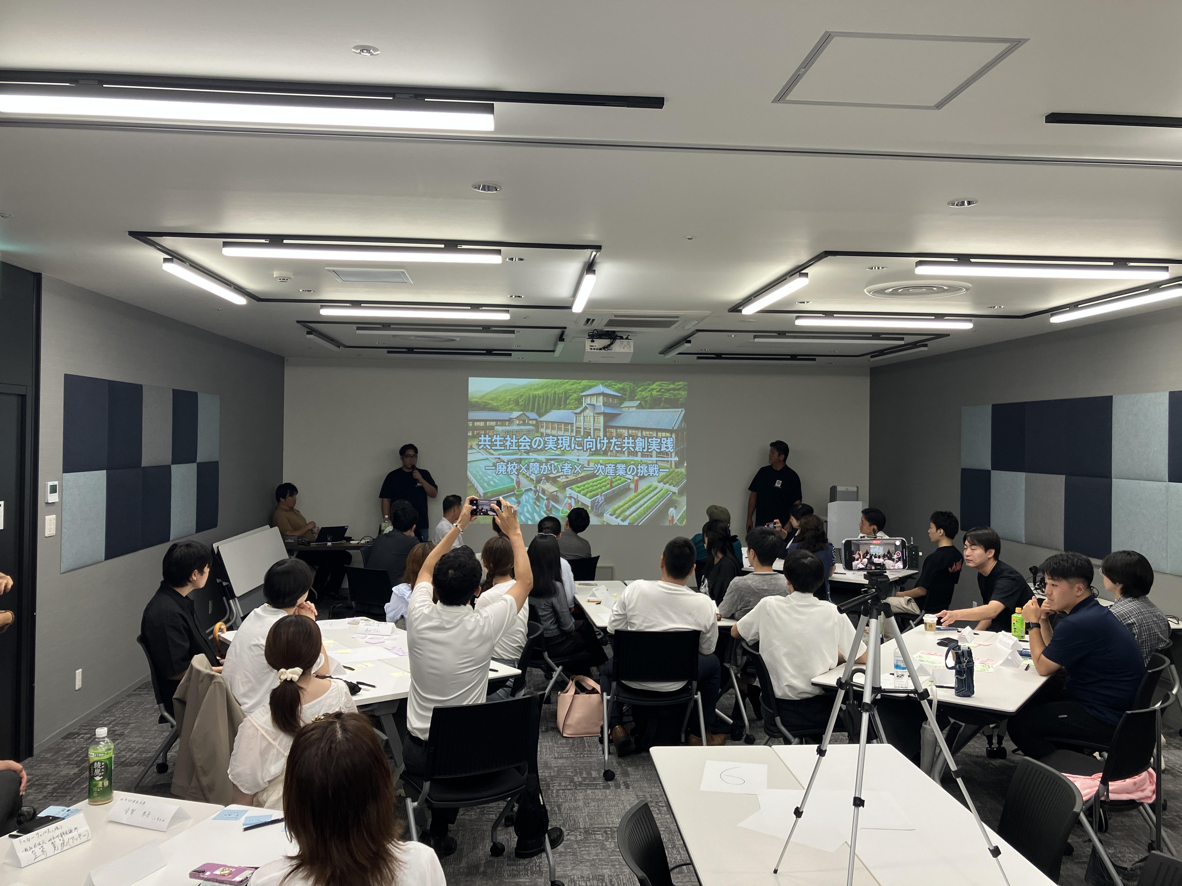 サーモン養殖から未来の福祉と食を考えるというテーマのお話しがあり、参加者は熱心にメモを取りながら聞きいっていました。