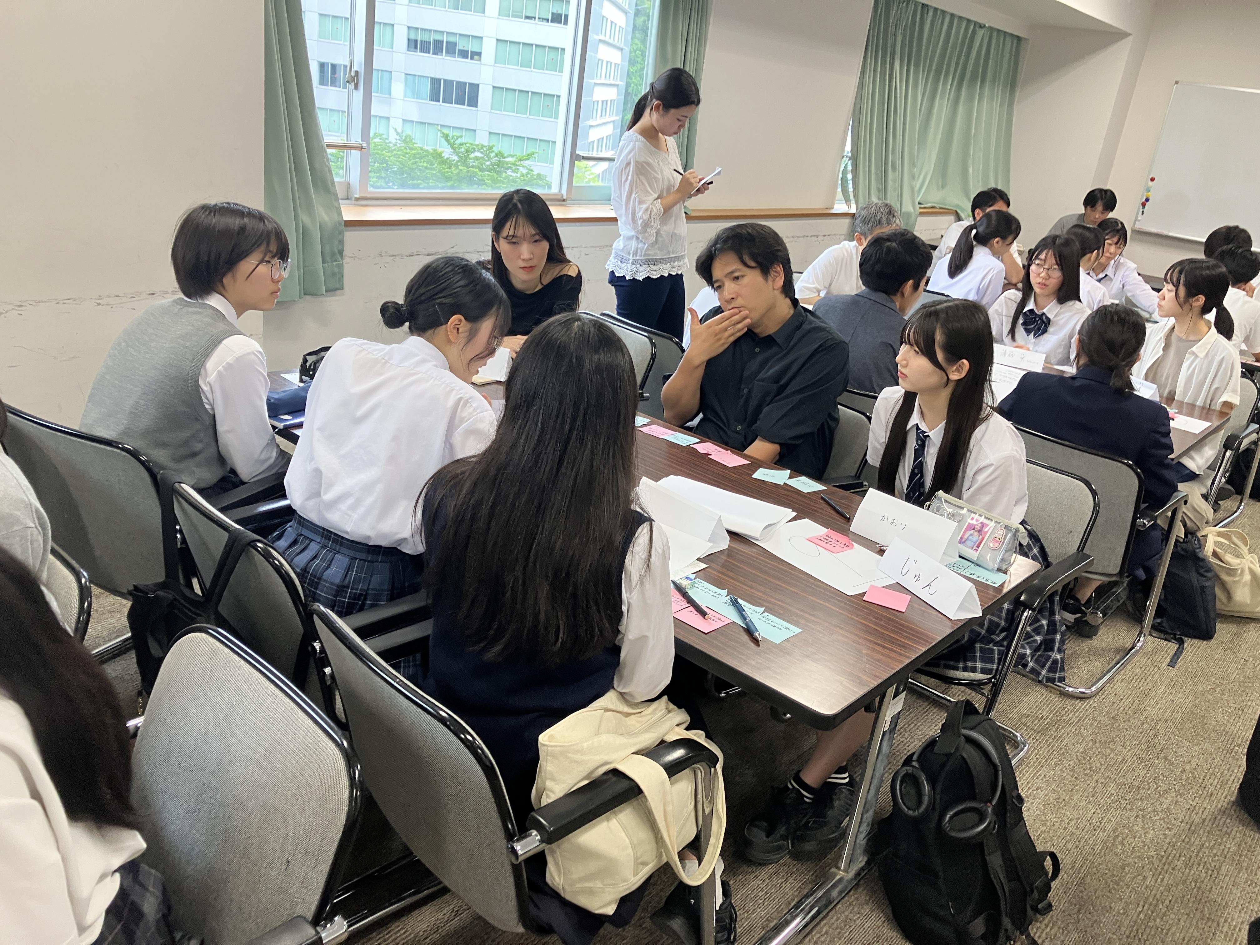 チーム内で一通りのストーリーを完成させたのち、高校生だけをテーブルに残し大学生・社会人は自チーム以外のテーブルに移動。テーブルにやってきた大学生・社会人に対し、高校生が自分たちのチームで話し合った内容を発表しました。