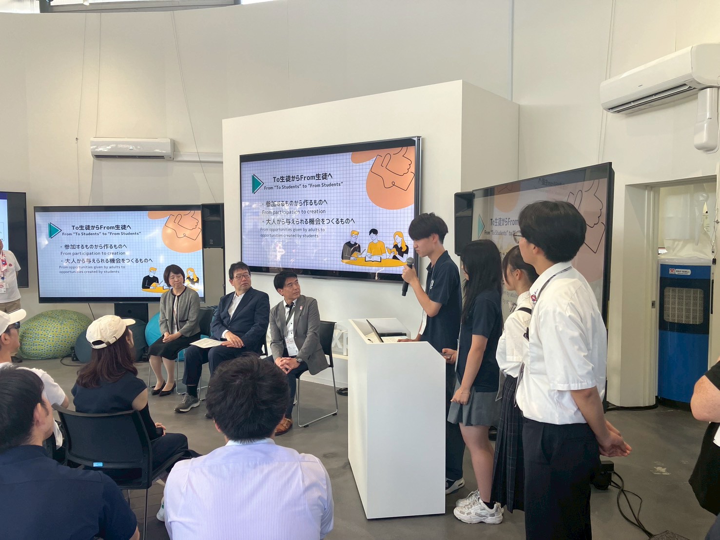 高校生たちが「高校生が主役の共創アクション」を大勢の来場者の前で発表しました。