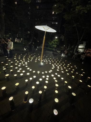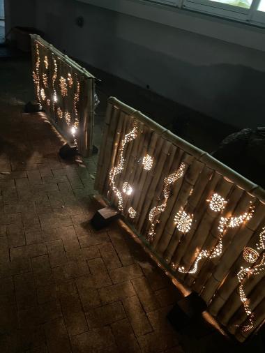 UR洛西竹の里で開催された住民の方が集まるお祭りでBambooBridgeの作成した竹灯籠が展示されました。