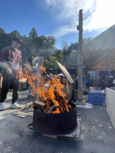 夏とは違い気温も低くなったため火を囲むことで暖を取りました。