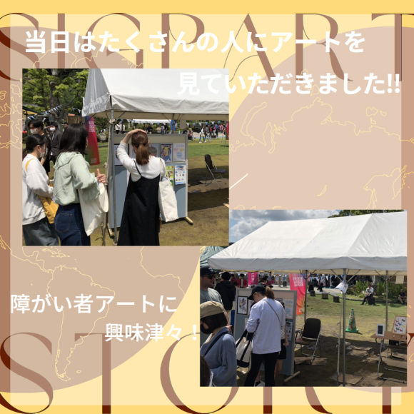 おかげ様で、多くの来客者の皆さまに、障がい者の方々が描いたアート作品を観賞いただきました!子供たちも、誰が描いたのか興味津々で、アートを軸に笑顔が生まれました^^